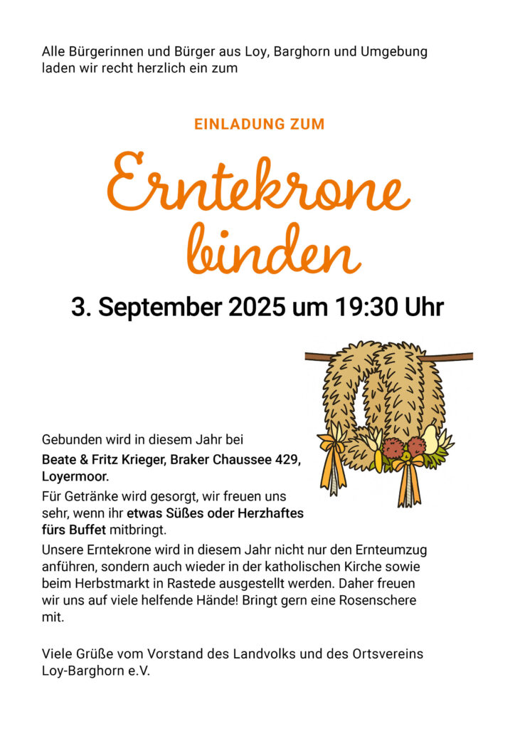 Gestern Abend fand bei Familie Krieger in Loyermoor das Erntekrone…